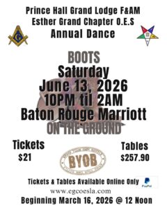 All ticket stubs and monies are due to the Grand Secretary via money order or Chapter check by May 1, 2026.